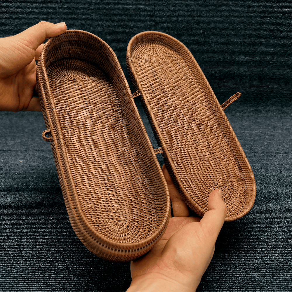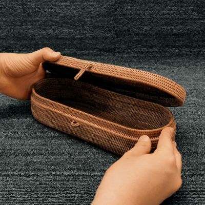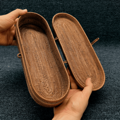 網目の細かい、非常に上質な”アタかご”の カトラリーケース。